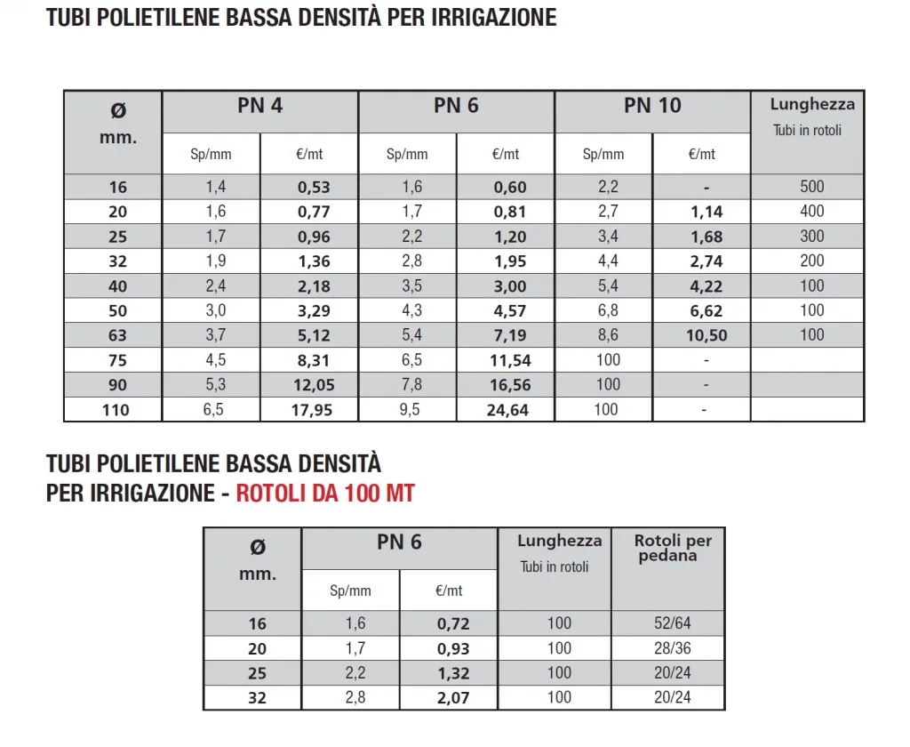 Tubo PE80 Bassa densità (IRRIGAZIONE)